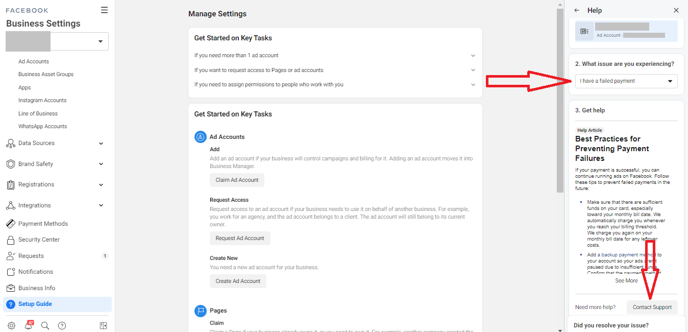 - Check through the Business Manager: You can find out the details of any restrictions and see whether the account is blocked in Facebook Business Manager.