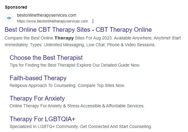 If you need quick visibility, Google Ads can be a powerful option in your digital marketing strategy for therapists. Paid campaigns push your listing near the top of search results for keywords that matter to your digital marketing agency. A polished ad setup instantly connects you with people already searching for therapist digital marketing or therapy services, allowing you to expand your reach right away.