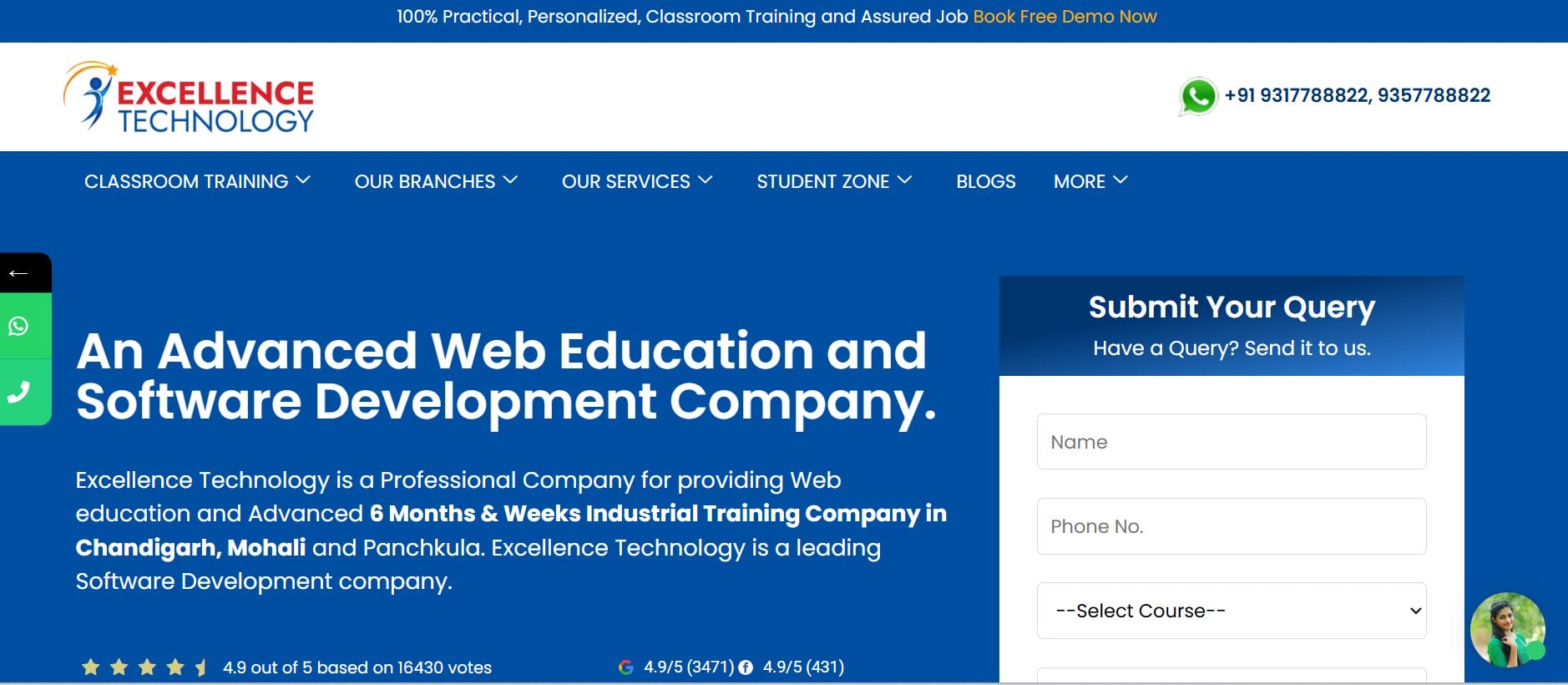 Excellence Technology is a top choice for digital marketing courses in Mohali. Their program is heavily focused on practical training which accounts for 100% of the time and also includes an optional valuable one-year diploma for detailed learning. The course content is carefully planned to include both the basics and the advanced topics of a digital marketing course like E-commerce marketing, Mobile App Marketing, and advanced marketing automation so that graduates can be hired instantly in the digital marketing industry.