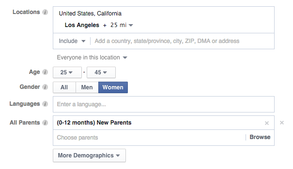 Demographics such as age, occupation, interests and activities can be noted for ideal buyers. In the case of hair care products, it can be marketed to women between twenty-five and forty-five who are into beauty or men worried about hair loss. With Facebook’s advanced targeting options, you can also narrow down by age, gender, location, interests, and even online behavior.