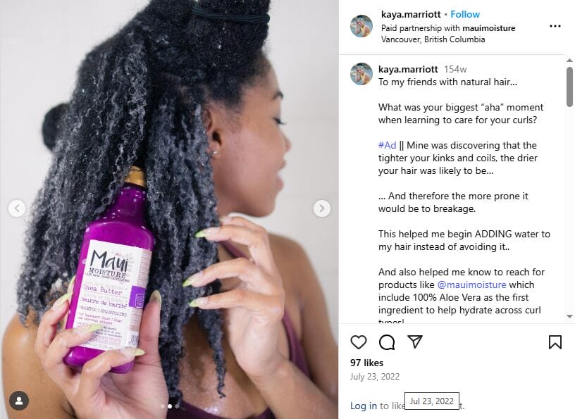 Highlight pain points for your audience and devise short copy that is driven around benefits to your product offering. Incorporate unique selling propositions like “sulfate-free,” “for curly hair,” and “results in 2 weeks and results are visible.” Don’t forget strong CTAs like “Shop Now,” “Learn More,” and “Get 10% Off Today” to drive instant action.