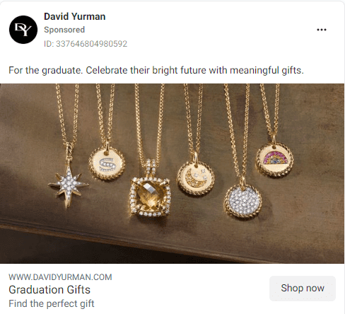 - Share a compelling story that shows the value of each jewelry piece in the advert text and Facebook Ads Creatives.