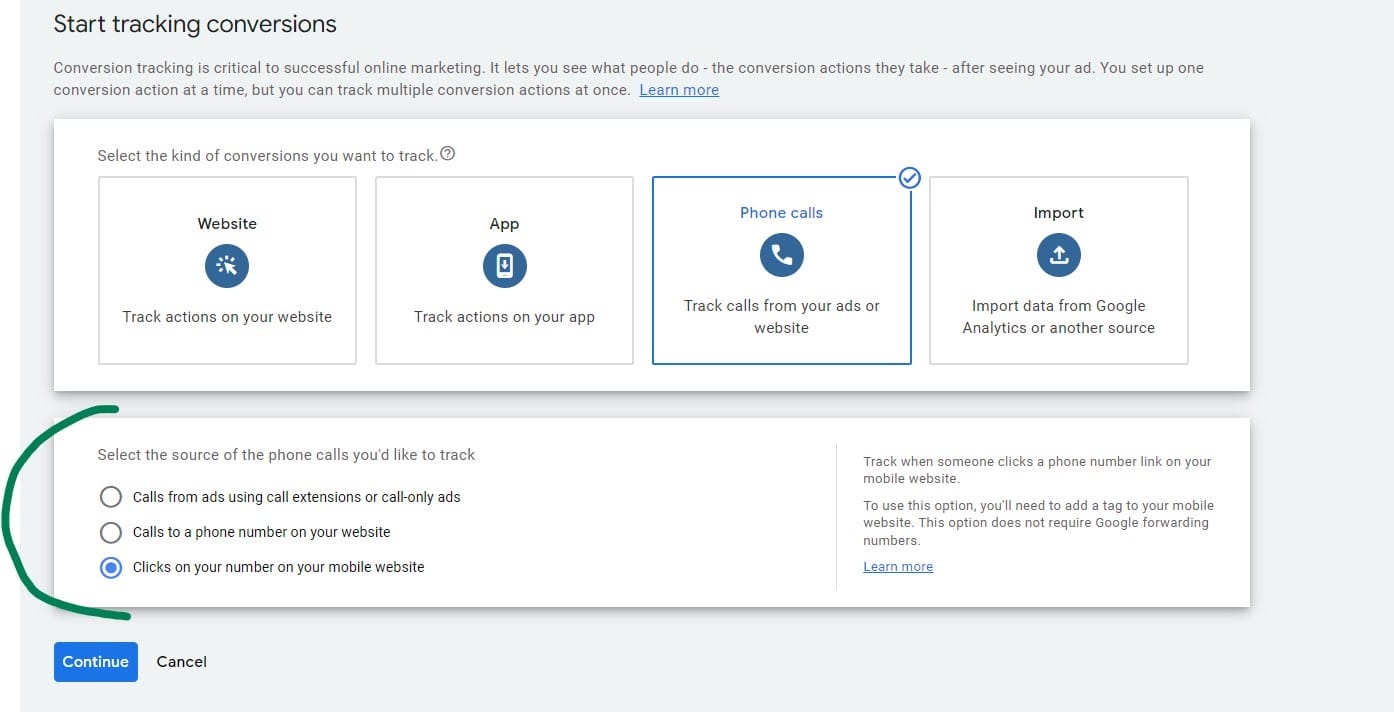Set Up Conversion Tracking: Identify what counts as a successful call in terms of conversion actions. Avoid irrelevant metrics like page visits; focus instead on calls of a certain duration that are deemed leads.