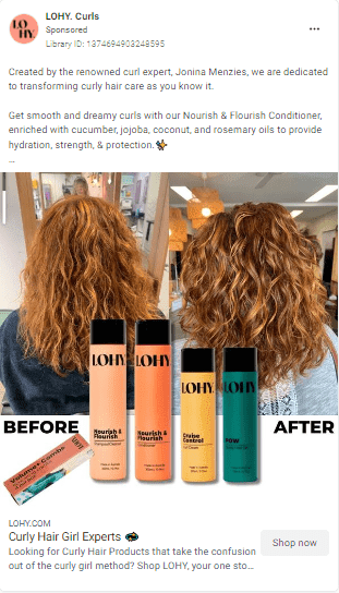 You should always make sure that you have a powerful call to action, like Shop Now or Discover Your Solution, and that is usually accompanied by a powerful discount offer to make someone want to buy it at that moment, it’s crucial to present content like hair care tips. An effective ad copy with compelling calls to action is the best way to help improve the performance of the ad and increase the sales effectiveness of the Facebook ad platform.