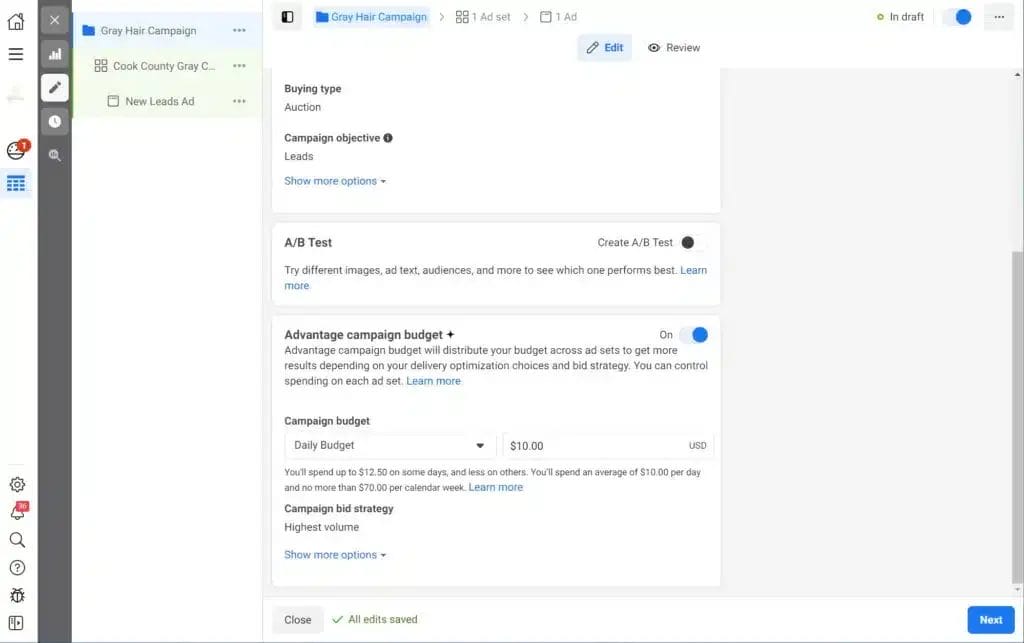 Due to the robust targeting options available in Facebook, you can test out various types of custom audiences, such as lookalike audiences or interest groups, to accurately find your perfect customers. Use different creatives and messages to run multiple ad campaigns at the same time, ensure your ads resonate with those seeking diverse hair solutions. to determine which message and creative work best.