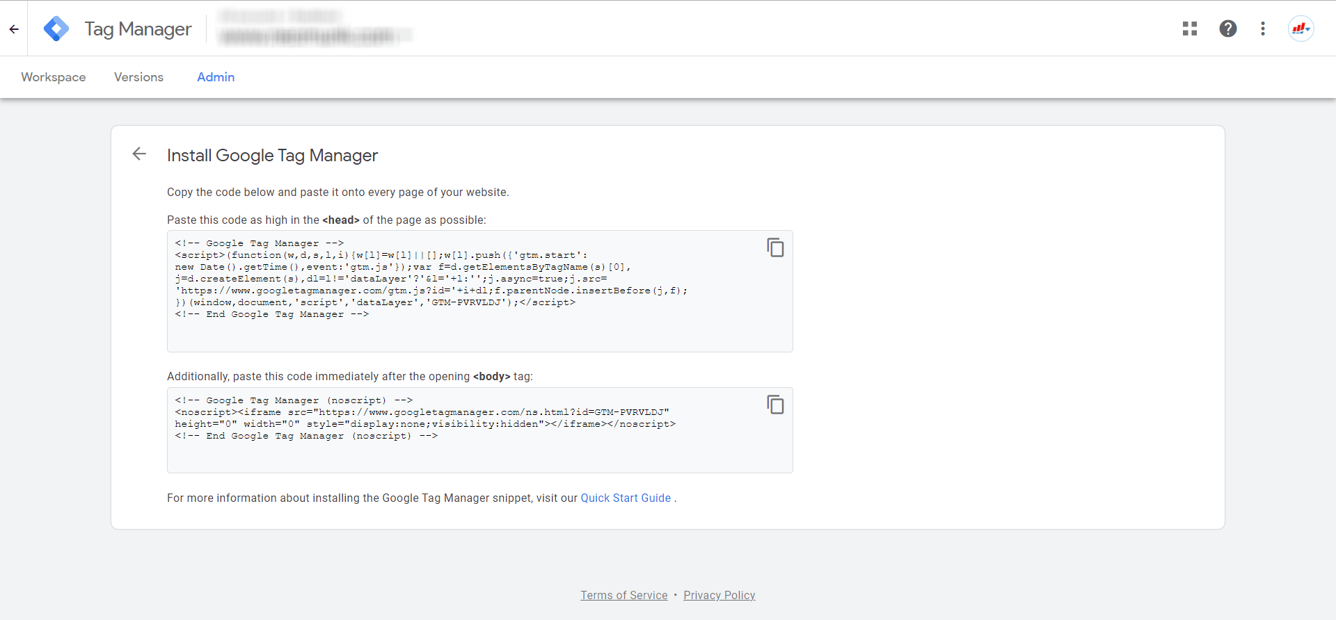 Sign up for Google Tag Manager Account and reach the stage where it will ask you to verify using code insertion