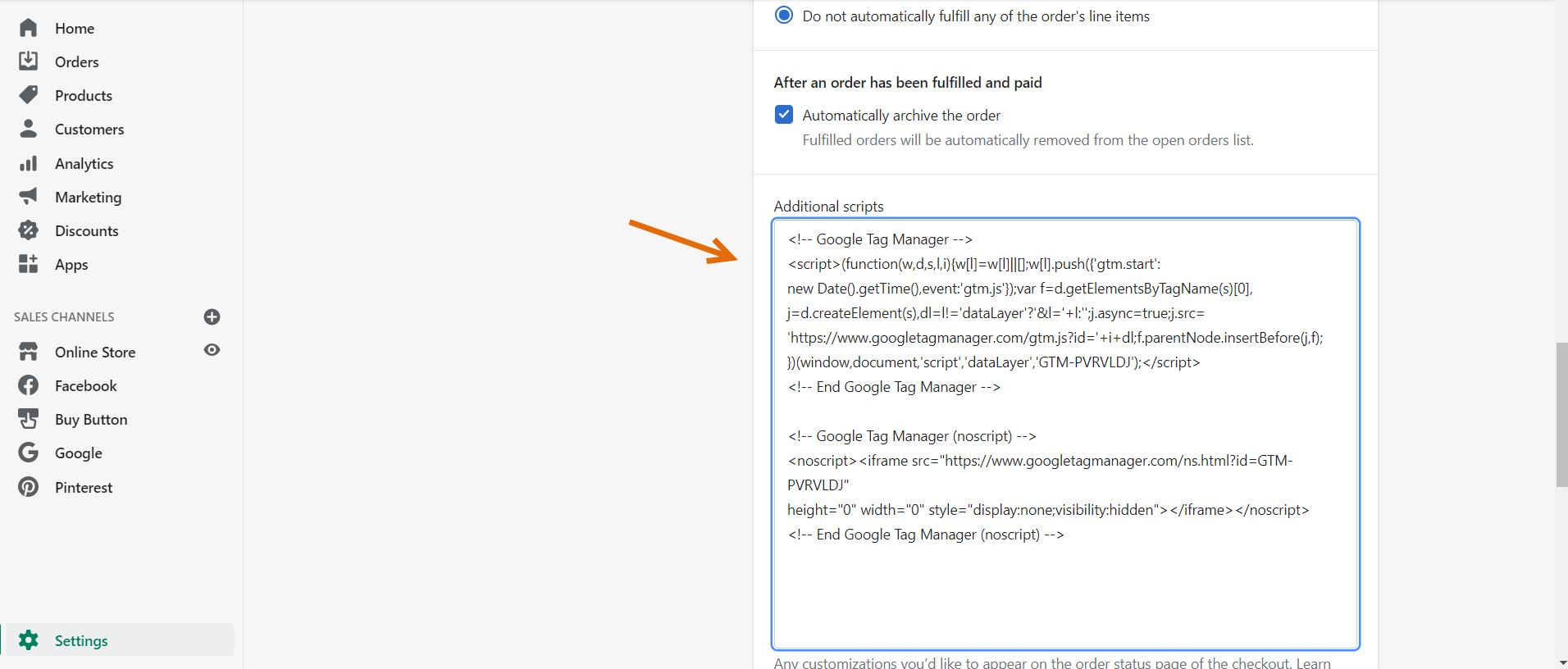 For this, you can go to Settings > Checkout > Additional Scripts