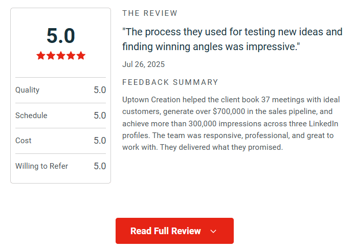 These agencies employ LinkedIn’s powerful targeting capabilities of identifying your clients through the job title, industry, or company size to refine targeting further to the specific ideal customer profile. Because relevancy of audiences and messaging is highly prioritized, ad dollars are utilized more efficiently, resulting in increased qualified leads at a lower cost per acquisition.