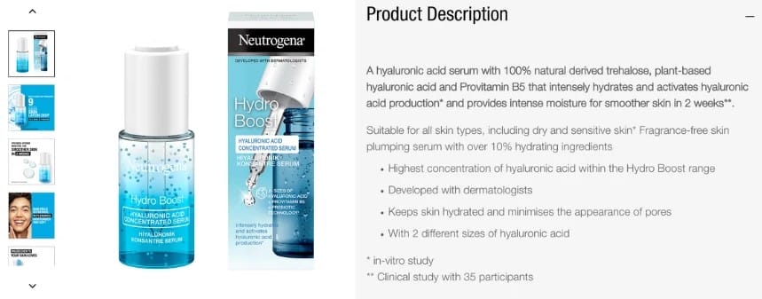 - Look at the advantages, not just the ingredients: Don’t simply provide a list of ingredients, but tell the customer what those ingredients do to their skin. Describe the change it brings to skin concerns instead of using the name of the product.