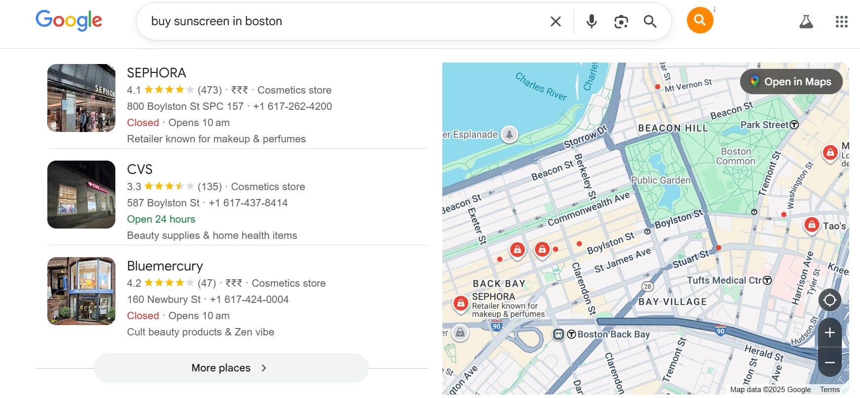 Create a Google My Business profile and fill it out with hours, photos, and services. Invite customers to post geo-tagged reviews, which are a great way of increasing local rankings. Make sure that your Name, Address, and Phone number (NAP) are the same in every online directory and your skincare site.